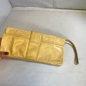 Vintage Hobo International Large Leather Crescent Clutch Yellow