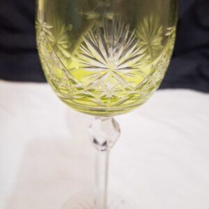 Vintage Hock Wine Glass Cut to Clear Green Peridot /Lime 7 ½”.