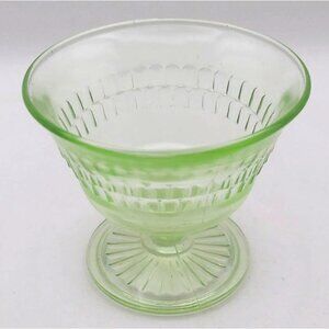 Vintage Hocking Glass Roulette Many Windows Uranium Green Sherbet & Saucer
