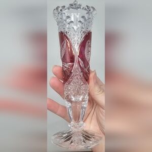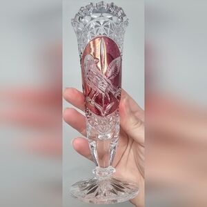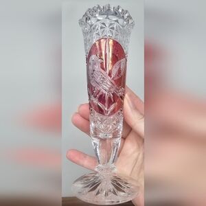 Vintage Hofbauer Byrdes Bud Vase 6.5” German Lead Crystal Ruby Red Bird