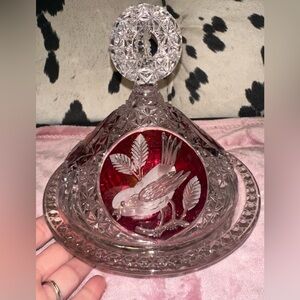 Vintage Hofbauer Byrdes Collection "The Ruby" footed candy dish with a lid