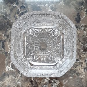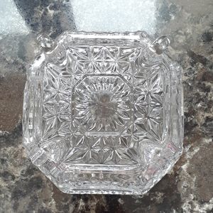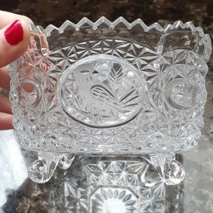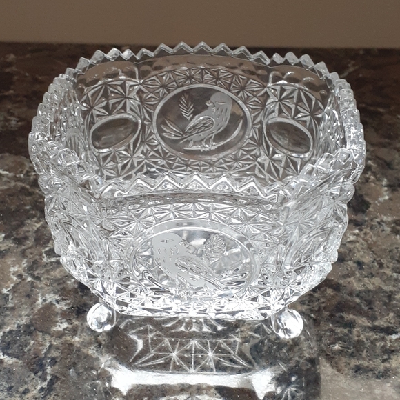 Candy dish. German lead crystal. Excellent condition. 4 Bottom legs. Etched bird design.