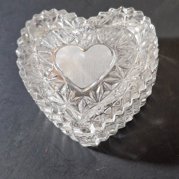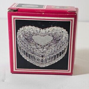 Vintage Hofbauer Leaded Glass Crystal Heart Trinket Jewelry Box 2.5 inch