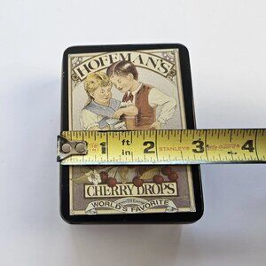 This vintage Hoffmans Cherry Drops small tin, measuring 4 inches in size. This collectible storage tin features a multi-color design, making it a unique retro decorative piece for any collector of advertising merchandise. Previously contained cough drops adding to its nostalgic value and appeal to those interested in vintage memorabilia. No dents. Please review all photos as they accurately represent the item as is.