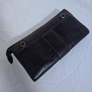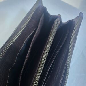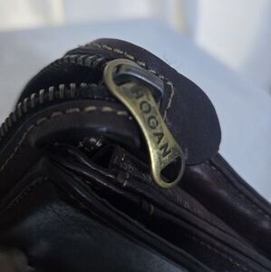 Gorgeous dark chocolate colored Hogan hobo style Satchel made in italy (authentic). Beautiful brass hardware, snakeskin trim, ruched genuine leather, side pockets, shoulder strap style, clean inside and out. The wallet comes with the bag it's the same color, lots of pockets.