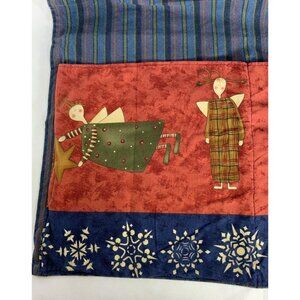 Vintage Holiday Angel Youth Apron 26" Festive Stripes Pockets Waist Tie Baking