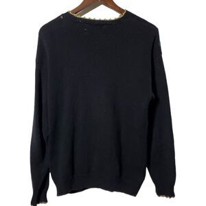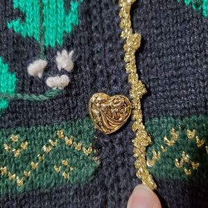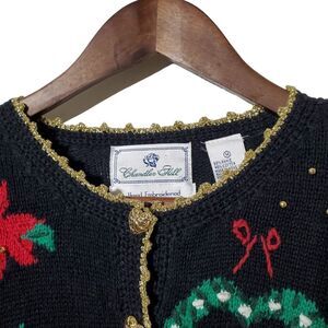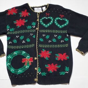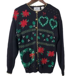 Vintage Holiday Cardigan Sweater Size M Winter Poinsettia Hand Knit Womens