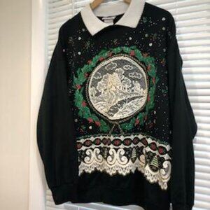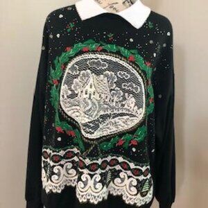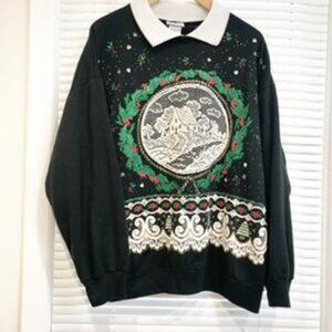 Vintage Holiday Christmas House Print Ugly Sweater Size XL.