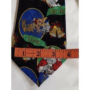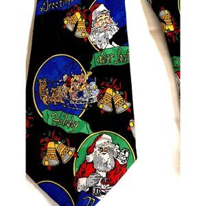 Vintage Holiday Christmas Tie 100% Polyester Made In Korea Santa & Sleigh Design