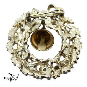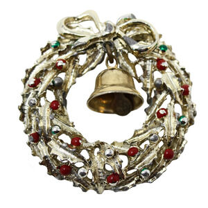 * Special Feature: Vintage Holiday Christmas Wreath Pin with freely moving bell. Ring in the Holidays!