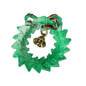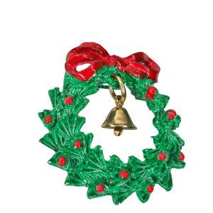 Vintage Holiday Christmas Wreath with Bell Brooch Pin 1 5/8" Diameter