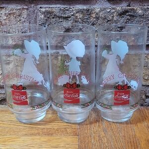 Vintage Holiday Coca Cola 3 Piece Glass Set