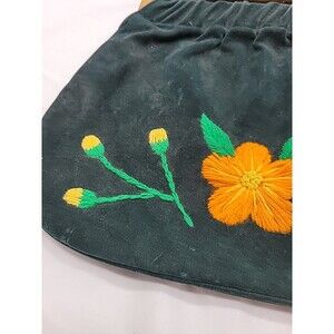 Vintage Holiday Fair Green Canvas Bag Purse Floral Embroidery Wood Handles