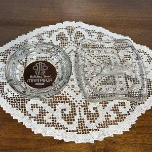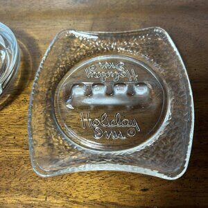 Order is for (2) clear glass Holiday Inn ashtrays. The oblong rectangular textured glass 3 slot tray has the logo embossed on the bottom and with no chips or flea bites is in excellent used vintage condition, circa 1970’s.