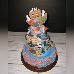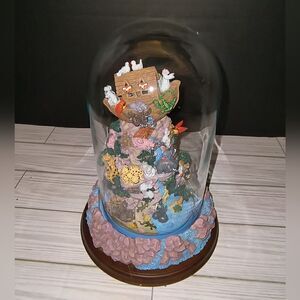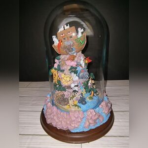 Vintage Holiday Noah's Ark Music Box by Bill Bell Glass Cover Franklin MINT 9.5". Has some wear from age and storage. Sold as is.
