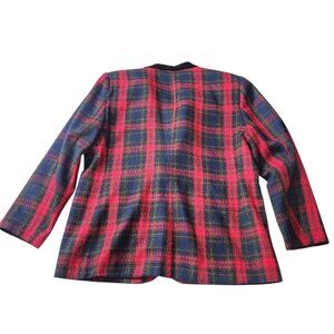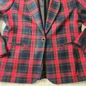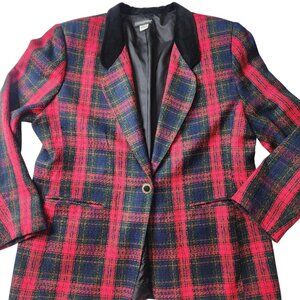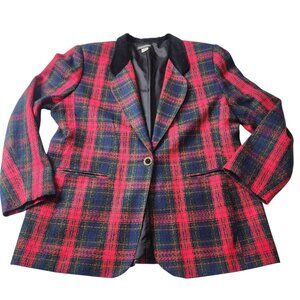 Vintage Holiday Red Plaid Single Button Blazer Jacket Velvet Collar Size XL