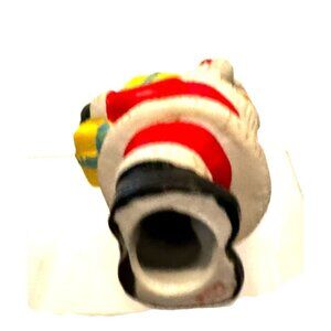 This 1992 V.M.I. vintage Santa Claus figurine is crafted from painted porcelain, capturing the holiday spirit with its exquisite detailing and festive design. A perfect addition to your holiday decor or a special gift for collectors.