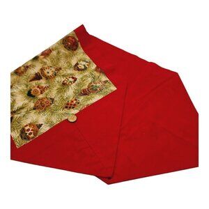 Vintage Holiday Christmas Table Runner Ornaments Pines Military Button Accent 14-1/2 x 39"