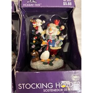 Vintage Holiday Time Christmas Stocking Hanger Holder Lot of 2 Snowman Reindeer