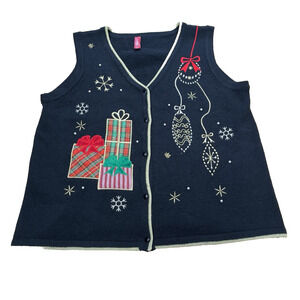 Vintage Holiday Time Christmas Sweater Vest Gifts Presents Bulbs Size XL Black