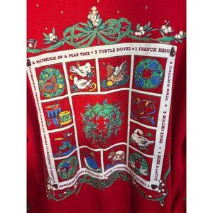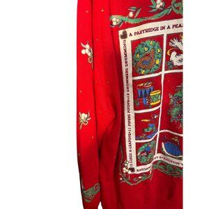 This Holiday Time sweater features a festive design inspired by the "12 Days of Christmas." Its vibrant red color and detailed graphics make it a stylish choice for holiday gatherings. The comfortable acrylic material ensures warmth and durability, providing a cozy fit. Ideal for adding seasonal flair to your wardrobe.