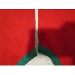This charming vintage holiday tree skirt, resplendent with its vivid red hue, features delightful embroidered hearts and playful reindeer. This piece is an enchanting addition to your festive decor, infusing nostalgia and warmth into your space. Crafted with care, it promises durability, easy maintenance, and effortless elegance. Felt and mixed poly blend material. One hook and loop closure.
