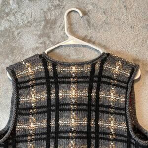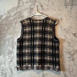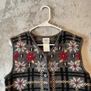 Vintage Holiday Wool Sweater Vest Red Snowflake Plaid Knit Retro Christmas MD