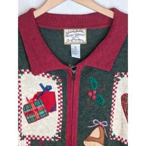 Vintage Heirloom Collectibles Christmas Holiday Zip Up Cardigan Sweater