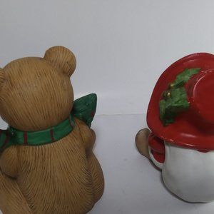 Vintage Holiday ceramic bears by Homco Japan .... see last five pics for the "flea bites"