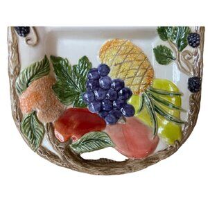This vibrant vintage Holland Mold tray enhances any table setting with its hand-painted fruit motif. Perfect for serving appetizers or side dishes while adding a touch of retro charm. Its durable ceramic build ensures both functionality and style.