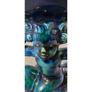 Holland Mold was a respected American ceramics company known for high-quality molds and collectible pieces.Their items are sought after by vintage collectors, especially those specializing in mid-century ceramics.The whimsical pairing of a cherub riding a dolphin is rare and visually striking.