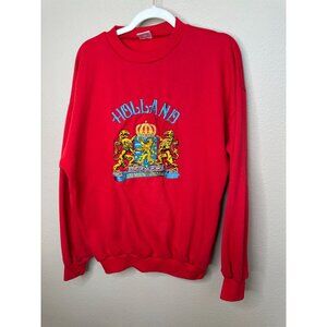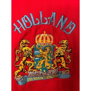 Vintage Holland Red Crewneck Sweatshirt XL Embroidered Crest Cotton Polyester