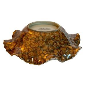 Vintage Holley Ross Shallow Orange Floral Glass Bowl