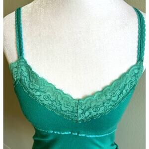 Vintage Hollister Babydoll Cami Tank Top Green Lace Trim Coquette RARE Y2K Med