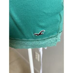 Looks great for the ago. No stains or tears. The Vintage Hollister Babydoll Cami Tank Top in green with lace trim exudes a cute and coquettish Y2K vibe. This sleeveless tank top features a sweetheart neckline and is made from a lightweight and breathable blend of rayon and cotton. The green color and lace fabric add a whimsical touch, perfect for a casual occasion in the spring. With a medium size and regular fit, this rare piece from Hollister is sure to become a standout addition to any woman's wardrobe.