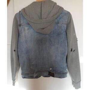 Item: Vintage Y2K Denim trucker jacket with fleece hood and sweatshirt-style sleeves