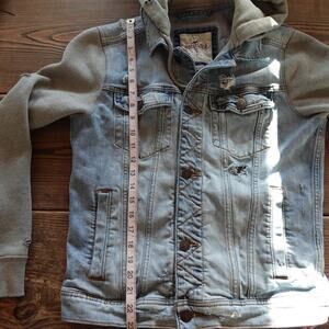 Vintage Hollister Denim Jacket Small Hooded Trucker Sweatshirt Distressed Y2K