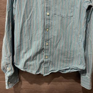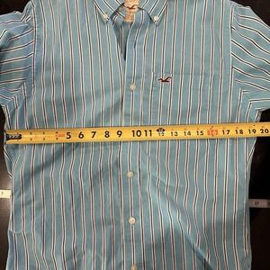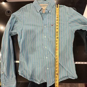 Vintage Hollister Mens Medium Blue White Striped Long Sleeve Button Up Y2K