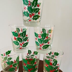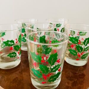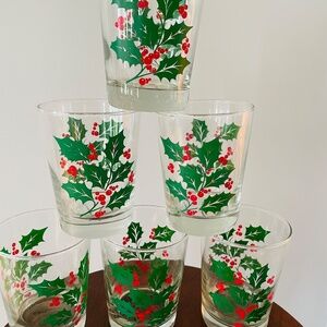 Vintage Holly Berry Christmas Glasses, Set of 6 Holiday Glasses