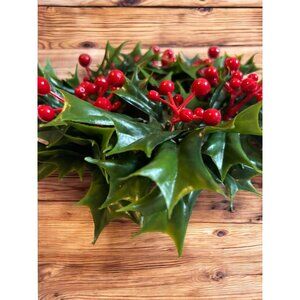 Vintage Holly Berry Christmas Plastic Candle Ring 10"