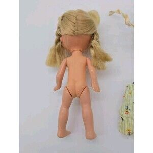 Good used preowned vintage condition. (May show general preowned vintage age/wear. May have some imperfections, scratches, marks, spots etc. Nothing too major as far as flaws. There is some minor aging/staining on clothes. The shorts have lost elasticity in the waist. She doesn't have a hat or shoes or anything else. Just the doll, top and bottoms. Her braids are missing ribbons and coming undone. Otherwise good.