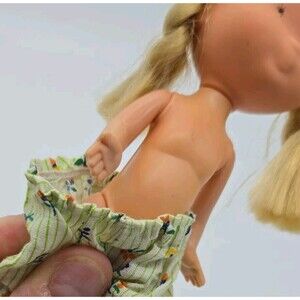 This Vintage Holly Hobbie Amy Doll is a rare find for collectors and fans of the iconic 1970s doll. With blonde hair in braids, this 6.5" doll comes with clothes to complete her look.