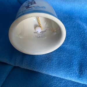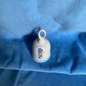Vintage 1980’s Holly Hobby Stoneware Bell, “ Blue Girl”. Blue and white , pictures a Holly hobby girl holding flowers and reads “ Memories are Precious Things “ There are no chips or cracks, very good vintage condition.