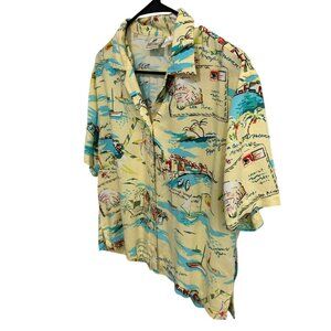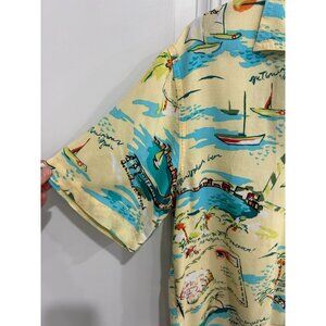 Vintage Holly Lane Retro Hawaiian Short Sleeve Button-Up Shirt Beach Print Sz M