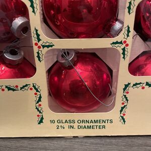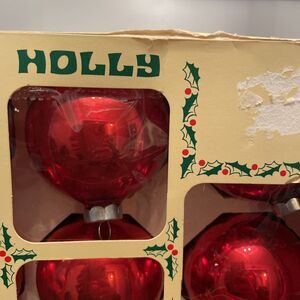 Vintage Holly Shiny Red Glass Christmas Ornaments 2 5/8” set of 9 USA 1” (1)