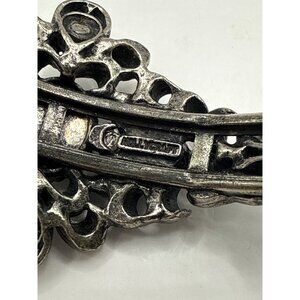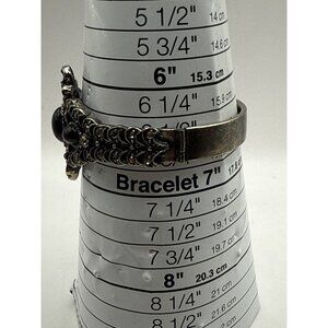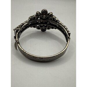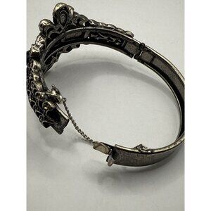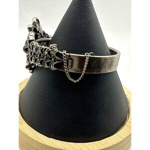Vintage Hollycraft Silver-Tone Ornate Hinged Bracelet With Black Stones & Safety