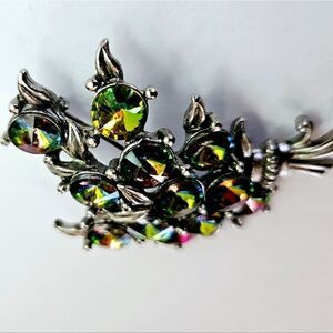 Vintage Hollycraft Watermelon Aurora Borealis Rivoli Rhinestone Bouquet Brooch