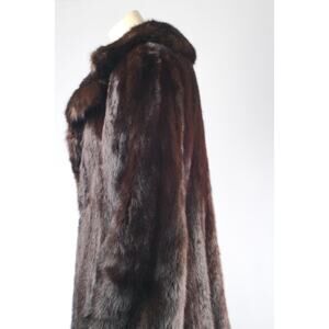 Timeless and elegant, this vintage Hollywood Furs dark brown long mink coat is a classic example of luxury outerwear craftsmanship. Made from rich, glossy mink fur with a beautifully draped long silhouette, this coat offers exceptional warmth and sophistication. A true vintage investment piece with enduring style.