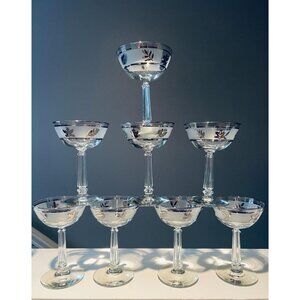 • (8) Libbey Rock Sharpe #3002 Silver Leaf Champagne/Sherbet Coupes (two sets of 4) $44.99 Each Set | Shipping Discount