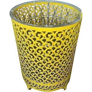 Yellow Filigree Waste Trash Basket Can W/ Liner